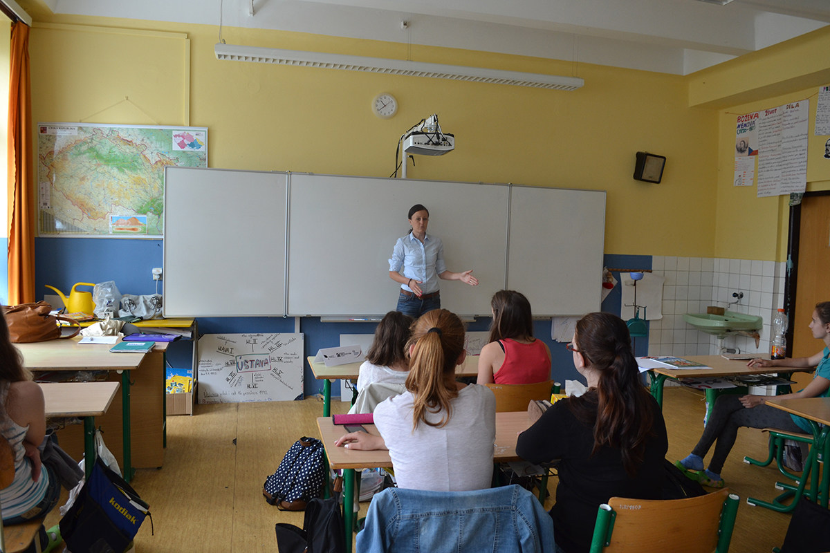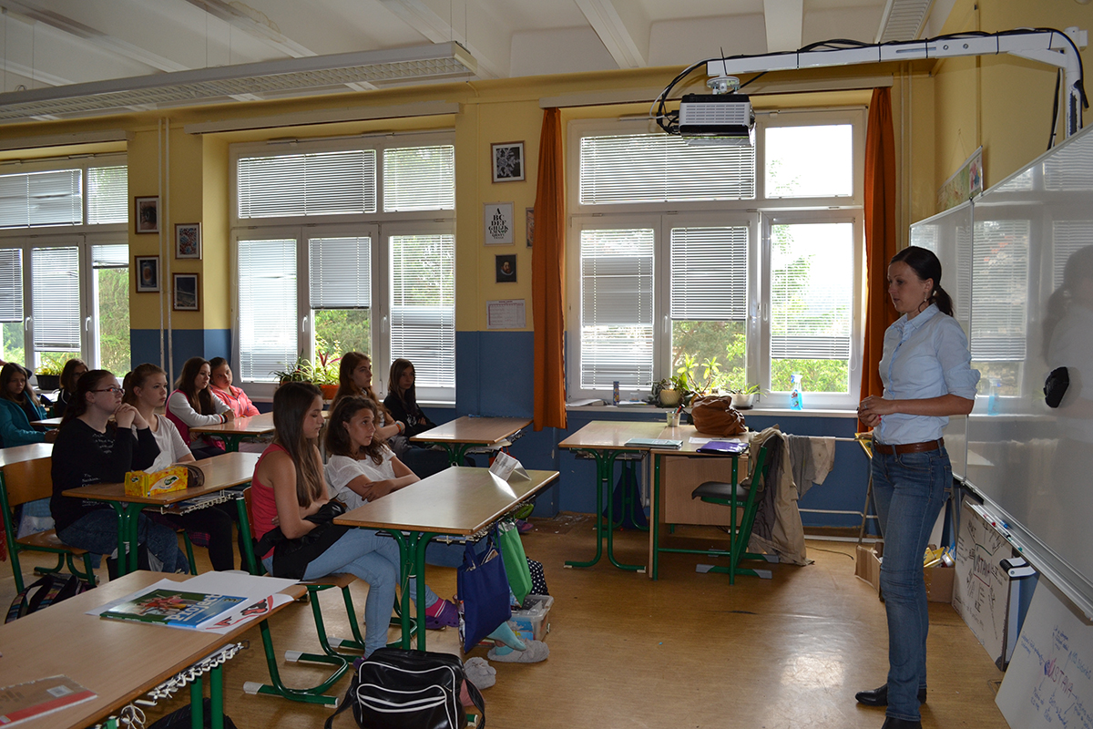 Úvodem besedy byly dívky seznámeny s projektem Technika a ICT – Cherchez la femme ! Poté se ujala slova paní Jana Poncarová, která dívkám vyprávěla svůj poutavý osobní příběh o cestě do techniky, kdy začínala jako studentka Filozofické fakulty přes její počáteční psaní mediálních článků se zaměřením na techniku až po založení Energetické poradny, ve které působí dodnes.