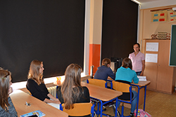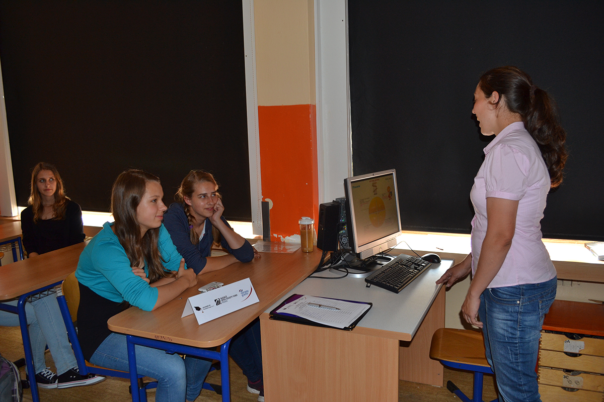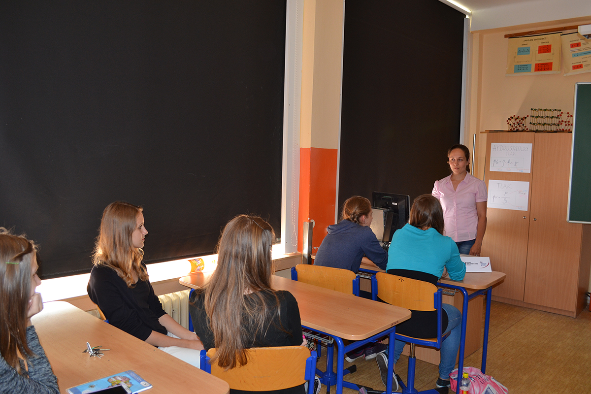 Úvodem besedy byly dívky seznámeny s projektem Technika a ICT – Cherchez la femme ! Poté se ujala slova paní Olga Pechlátová, která dívkám vyprávěla svůj poutavý osobní příběh o cestě do techniky, kdy začínala jako studentka Obchodní akademie, poté studovala elektrotechnickou fakultu a v současné době pracuje na pozici Senior engineer v oddělení Complience ve společnosti Daikin Industries Czech Republic s. r. o.