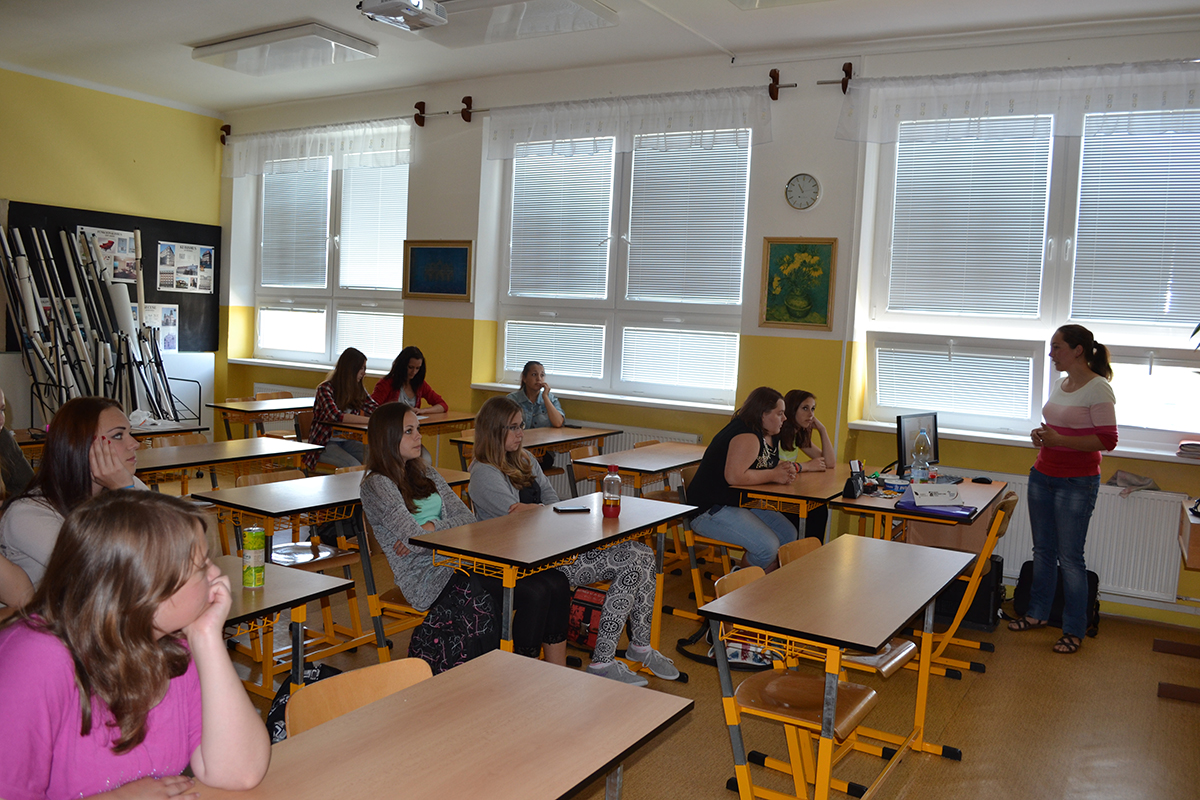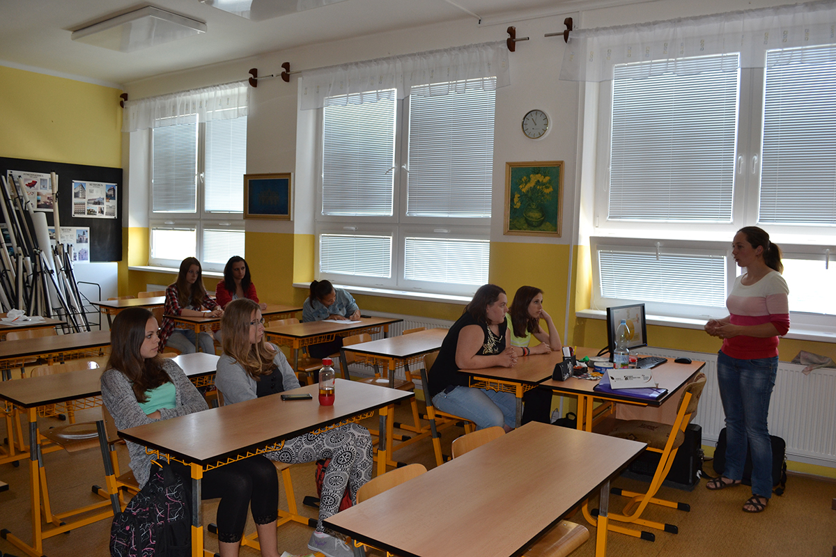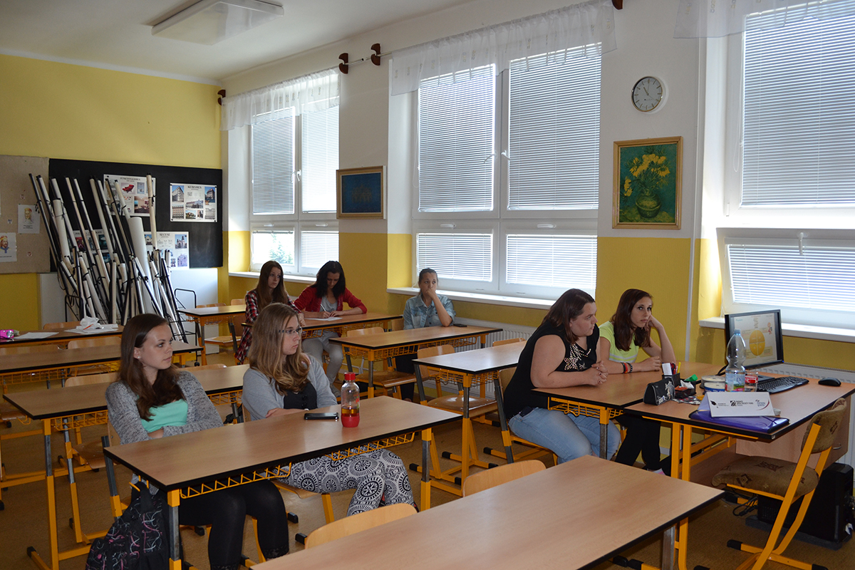 Úvodem besedy byly dívky seznámeny s projektem Technika a ICT – Cherchez la femme ! Poté se ujala slova paní Olga Pechlátová, která dívkám vyprávěla svůj poutavý osobní příběh o cestě do techniky, kdy začínala jako studentka Obchodní akademie, poté studovala elektrotechnickou fakultu a v současné době pracuje na pozici Senior engineer v oddělení Complience ve společnosti Daikin Industries Czech Republic s. r. o.