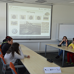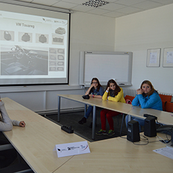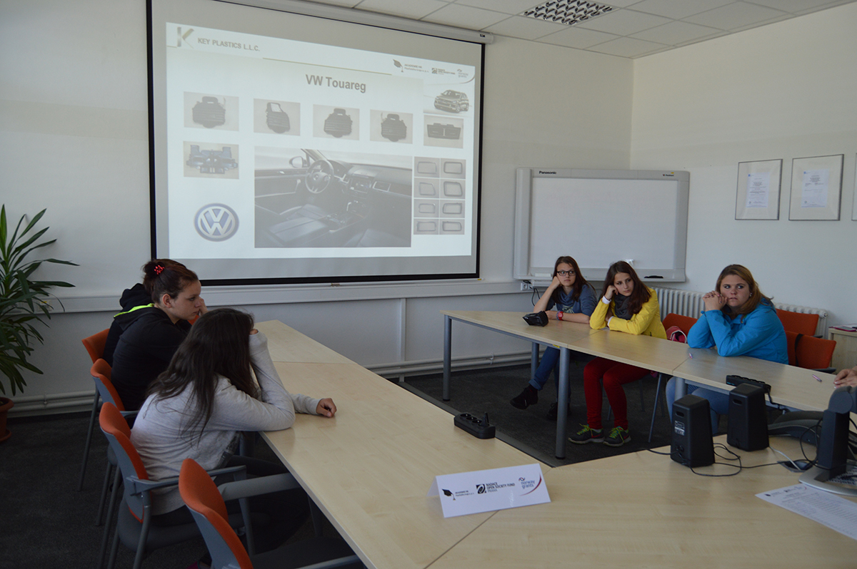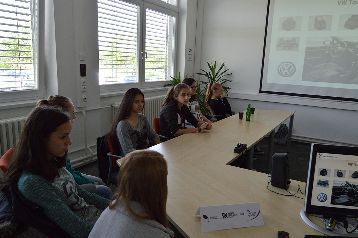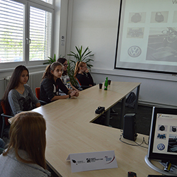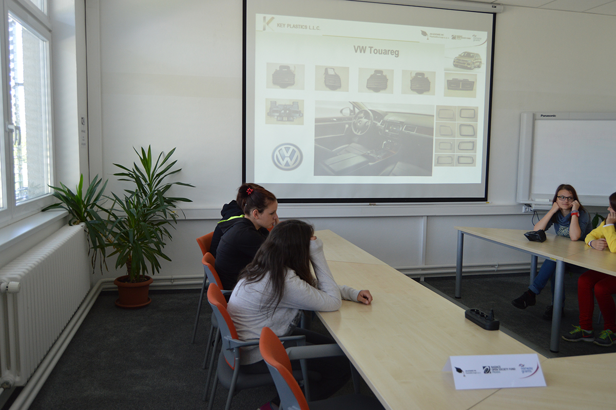 Druhou skupinku provedla pracovnice po výrobní hale a ukázala jednotlivá pracoviště od vzniku výrobku, montáž až po jeho konečné zpracování a distribuci. Dívky si měly možnost prohlédnout, jak se vyrábí plastové díly do jednotlivých automobilů, jak se lakují, montují, kde se skladují a jakým způsobem se kontroluje jejich kvalita před tím, než jsou odeslány zákazníkovi.