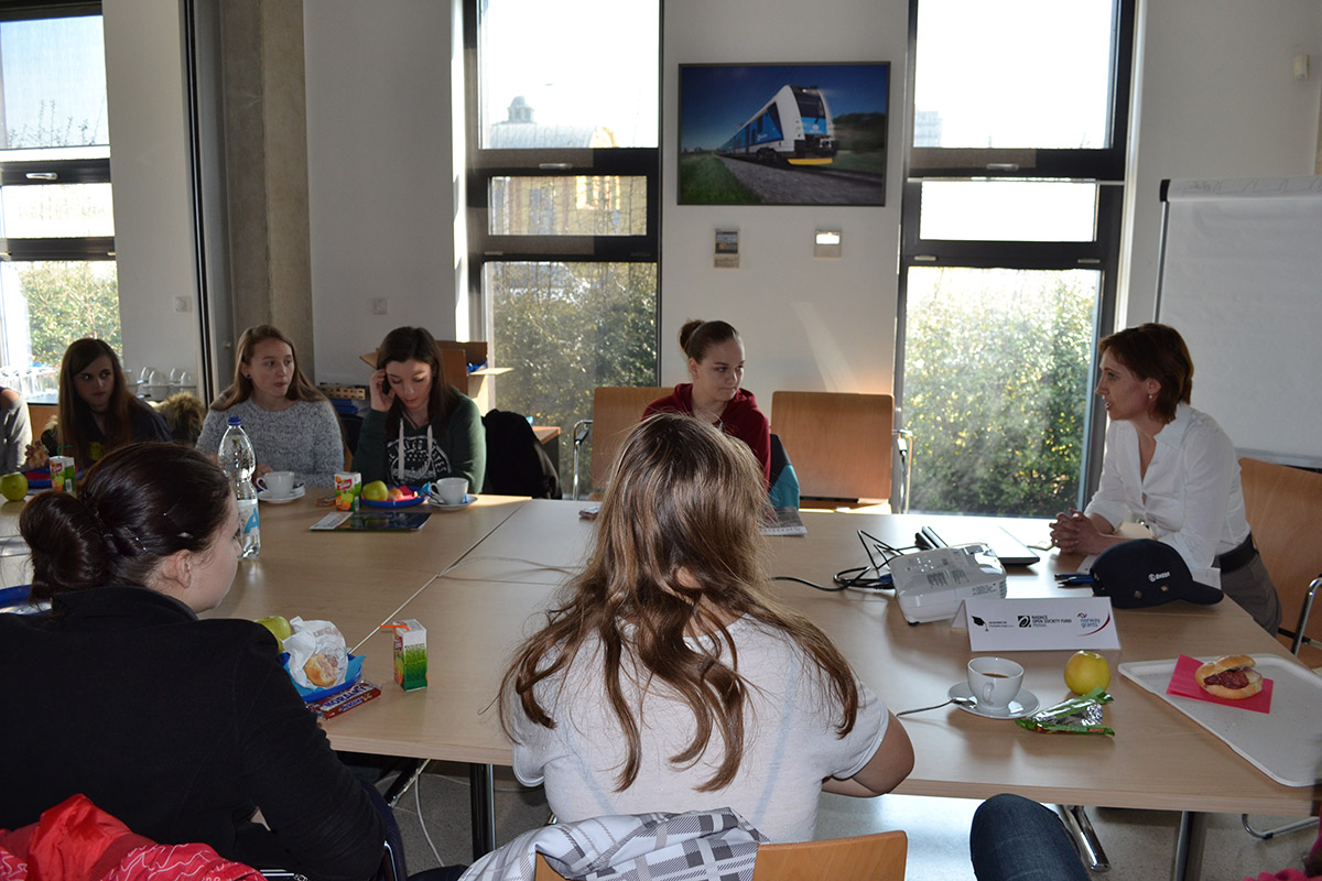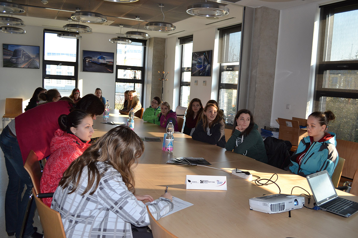 V úvodu exkurze byla děvčata seznámena s projektem Technika a ICT – Cherchez la femme !, poté se dozvěděla v krátkosti o vzniku a historii společnosti, její působnosti, výrobě a zakázkách a vyslechla si informace o nabízených možnostech pro studenty.