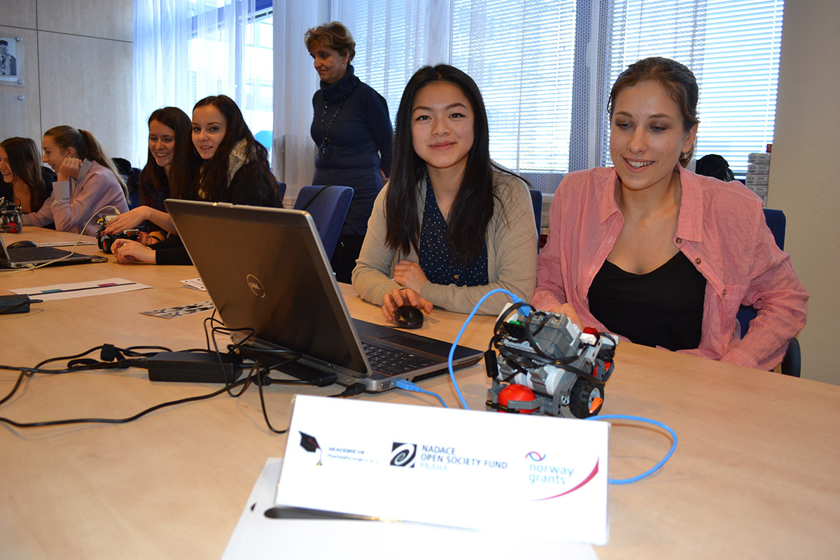 a komunikací. Studentky byly seznámeny s robotickou platformou a programovacím prostředím.
