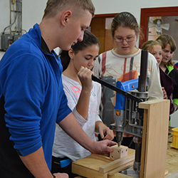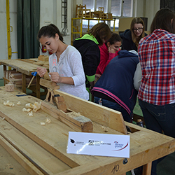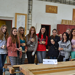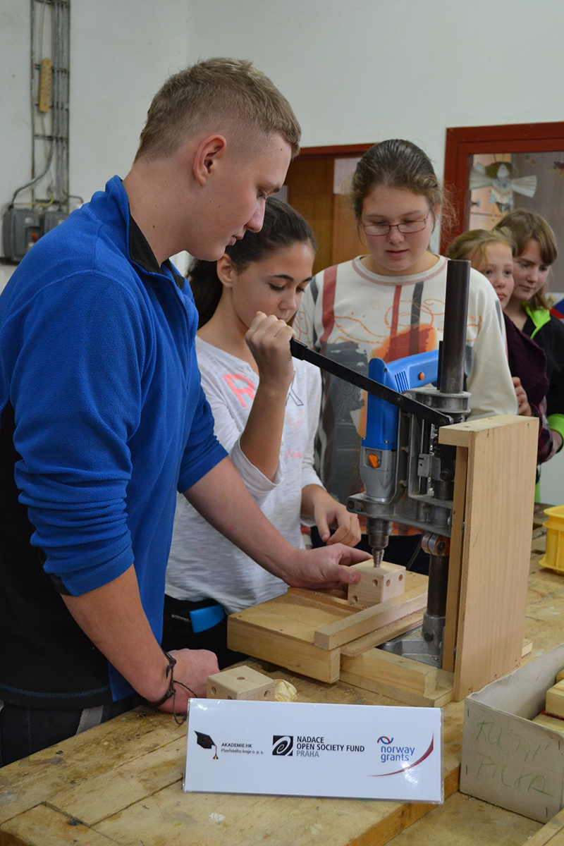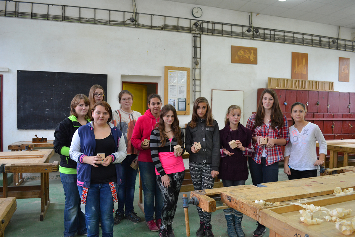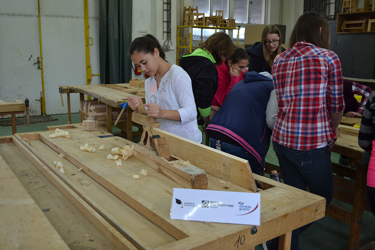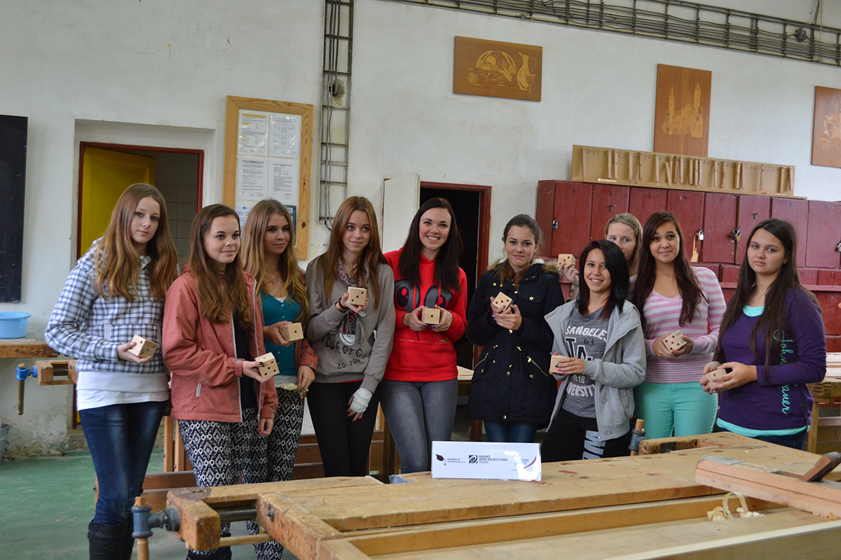 žákyně byly rozděleny do dvou skupin, jedna skupinka pracovala v truhlárně, kde byly seznámeny s jednotlivými druhy dřeva, s technikou, která se v truhlárně používá, po té si sami vyzkoušeli práci s vrtačkou a dodělaly si dřevěnou kostku, kterou si odnesly domů