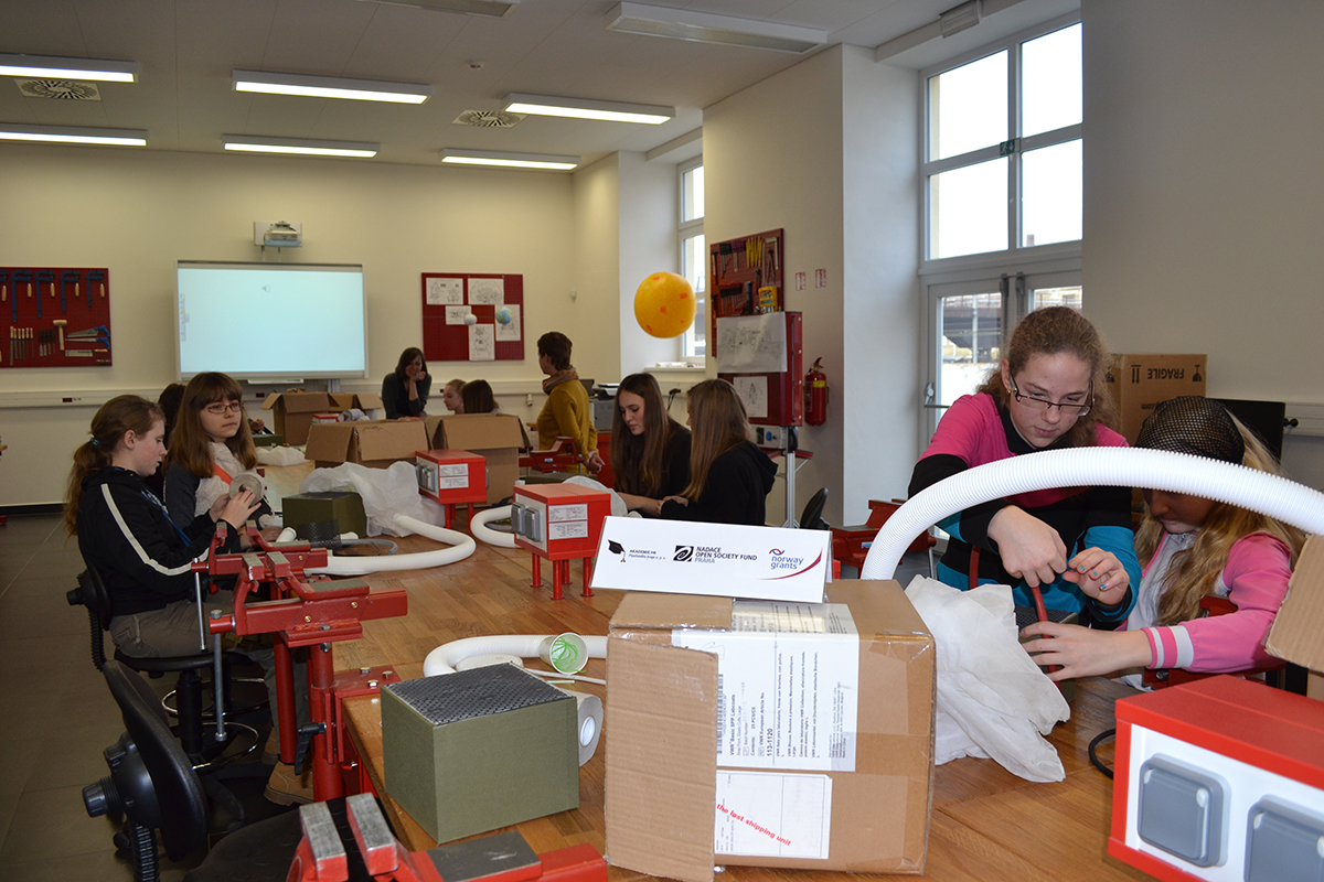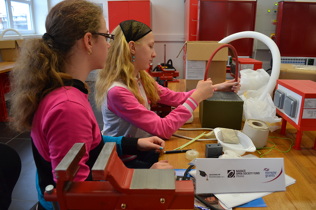 Fyzikální laboratoře - Dívky si formou pokusů vyzkoušely podtlak a řadu dalších měření