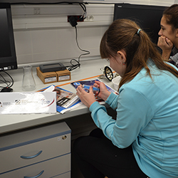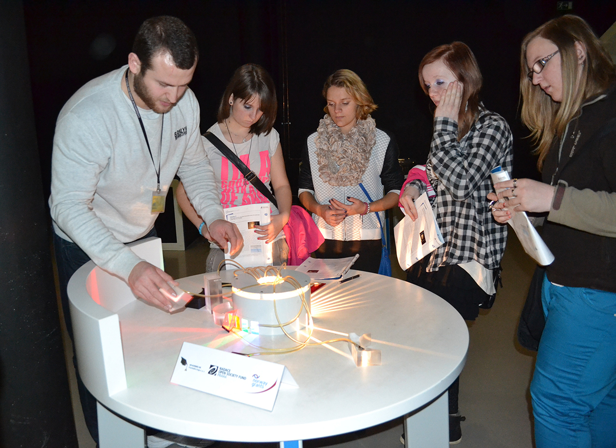 Pracovní listy - Posviťme si na optiku! Dívky byly seznámeny s exponáty expozice Edutorium, zaměřené na fyziku a vypracovaly soubor otázek týkající se optiky